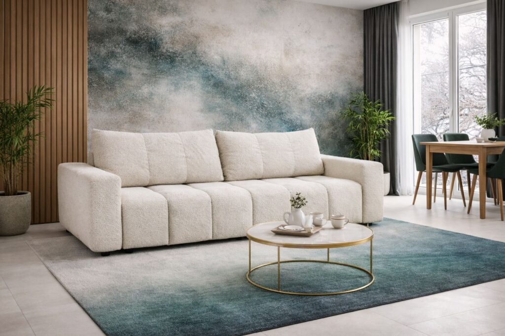 SofaAmelia placeholder Wymiary Szerokość: 155 cm Wysokość: 25 cm Głębokość: 152 cm Wysokość siedziska: 54 cm Powierzchnia spania: cm Ładowność: 1 m³