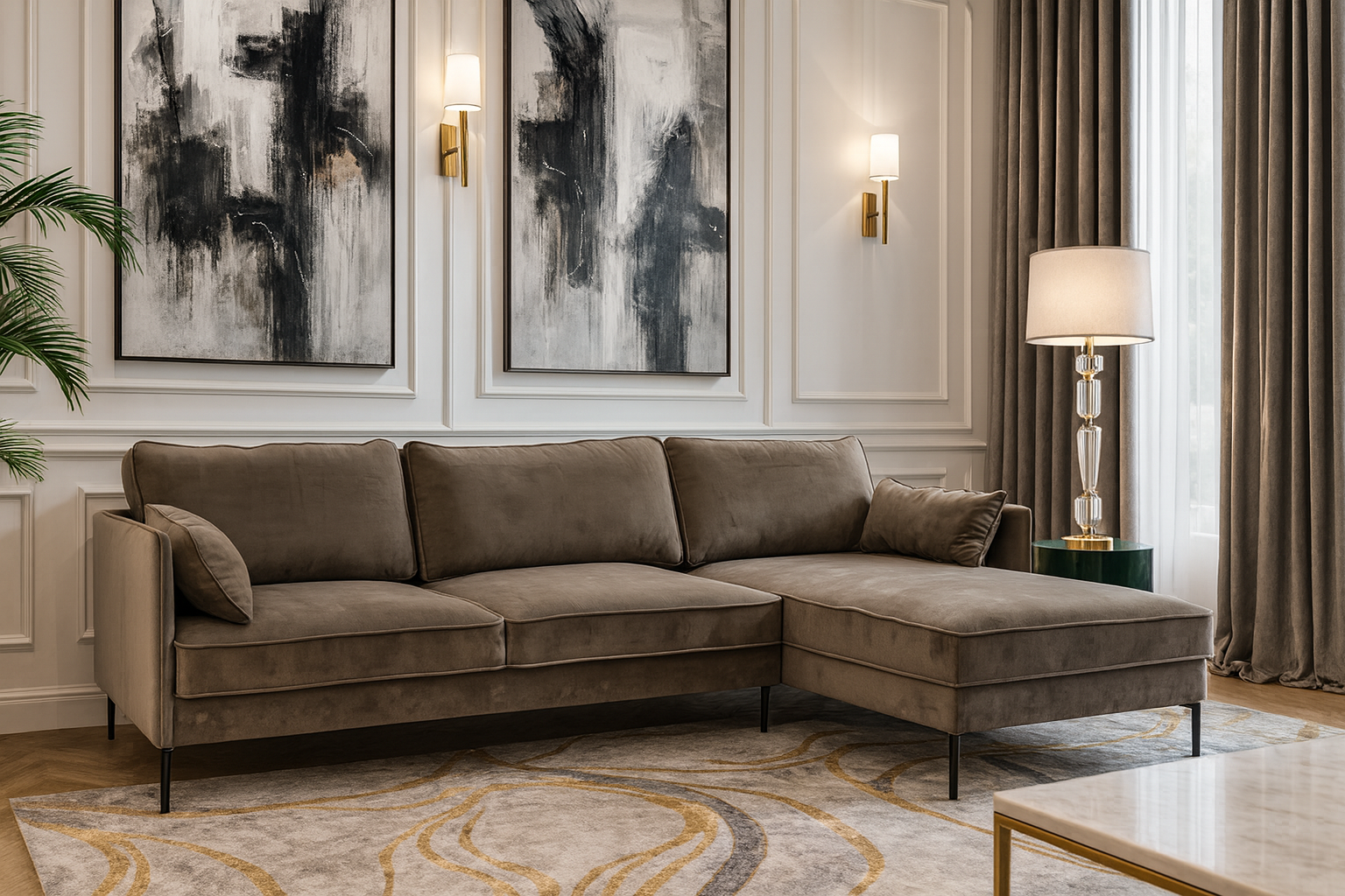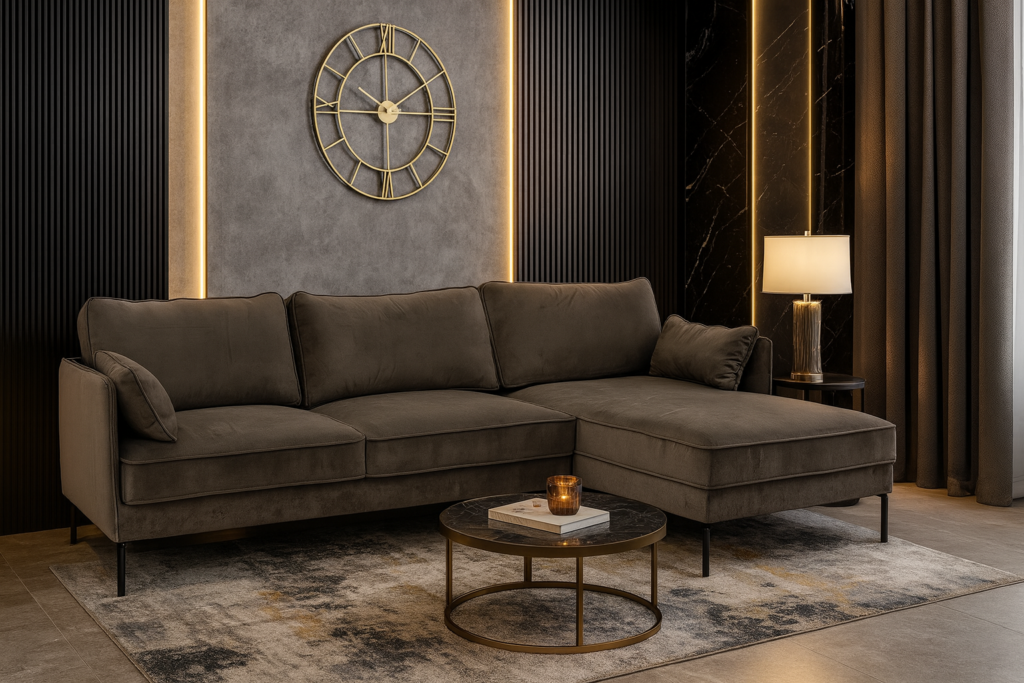 NarożnikRaven Wymiary Szerokość: 142 cm Wysokość: 23 cm Głębokość: 124 cm Wysokość siedziska: 124 cm Powierzchnia spania: 123x123 cm Ładowność: 1 m³